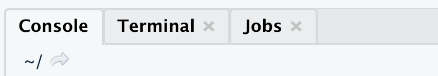 When you first open RStudio, look in the area right at the top of the Console pane to see your current working directory. Most likely you’ll see something cryptic: ~/