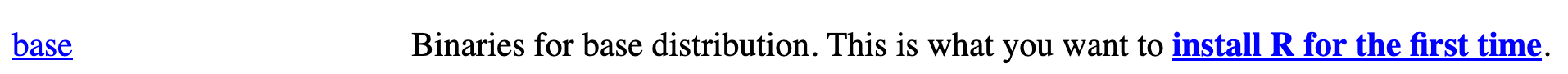 ; as of right now, the current version is 4.2.1) and download it.If you use Windows, click “base” (or click on the bolded “install R for the first time” link) and download it.